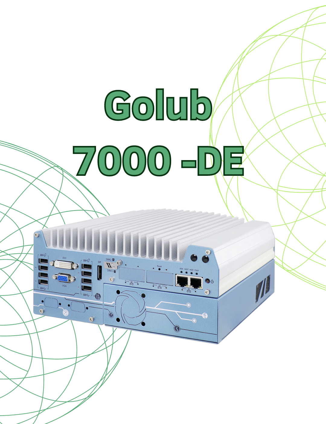 GOLUB 7000-DE Technical Specifications Intel® 8th / 9th-Gen Up to 64 GB, DDR4 2x Internal SATA, 1x M.2 & 1x mSATA Integrated Intel® UHD graphics 630 Fanless Microsoft Windows® 10 Protection class: IP20 240 x 225 x 110.5 mm 3.7 Kg Connection Ports 2x GigE, 1x Intel® I219, 1x Intel® I210; 6x GigE, 1x Intel® I219, 5x Intel® I210 4x USB 3.1 Gen 2 4x USB 3.1 Gen 1 2x RS-232/422/485, 2x RS-232 1x 3.5 mm jack for mic-in and speaker-out Expansion Interface 2x PCIe x8 slots@Gen3 1x mini-PCIe 1x MezIO® expansion interface for MezIO® modules Display Ports 1x VGA: 1920 x 1200 1x DVI-D: 1920 x 1200 1x DisplayPort: 4096 x 2304 Download Specs
