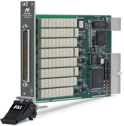 El PXI-2576 es un módulo PXI multiplexor de conmutación de múltiples bancos con 16 bancos de multiplexores 4×1 de 2 cables.